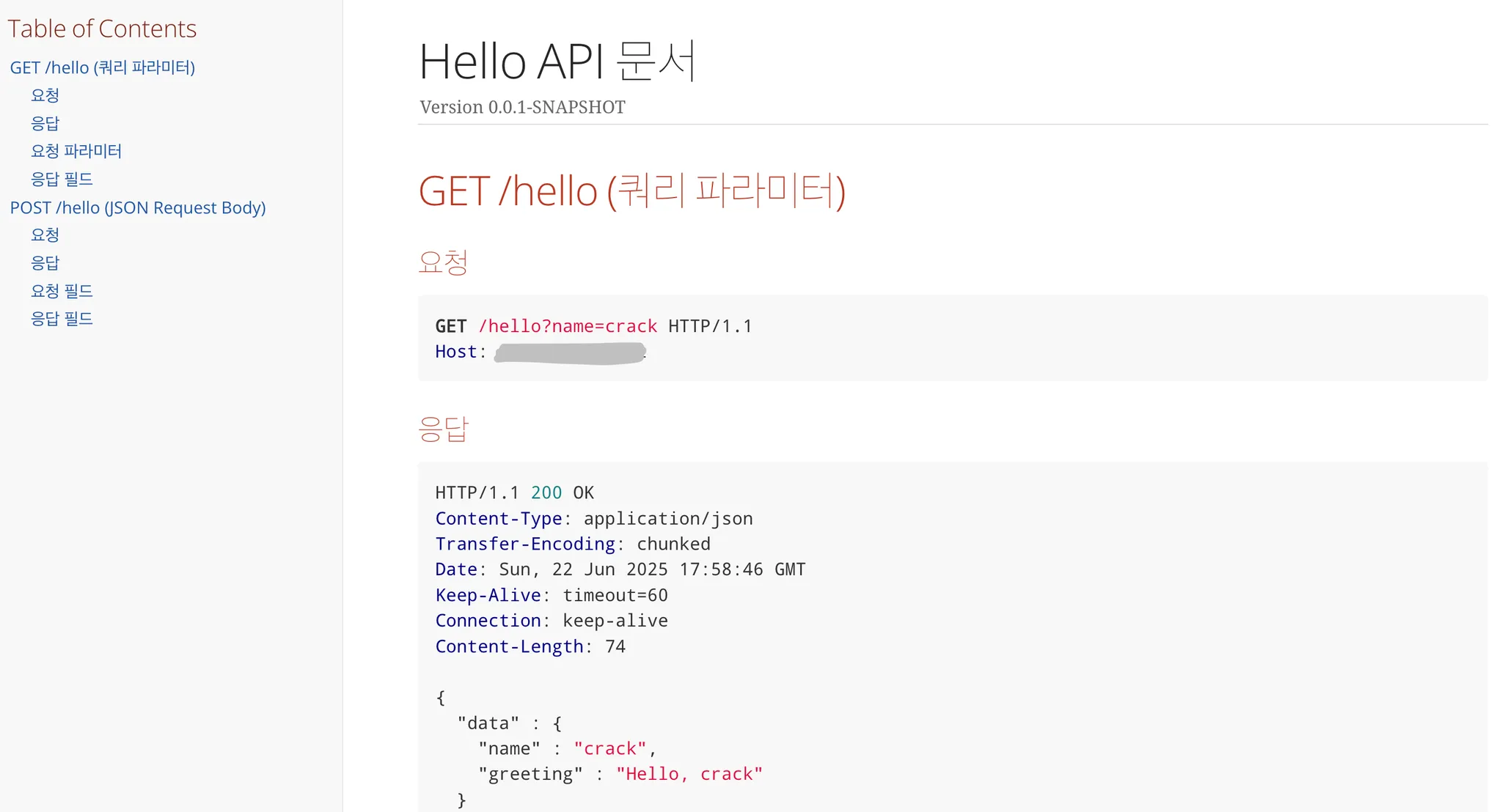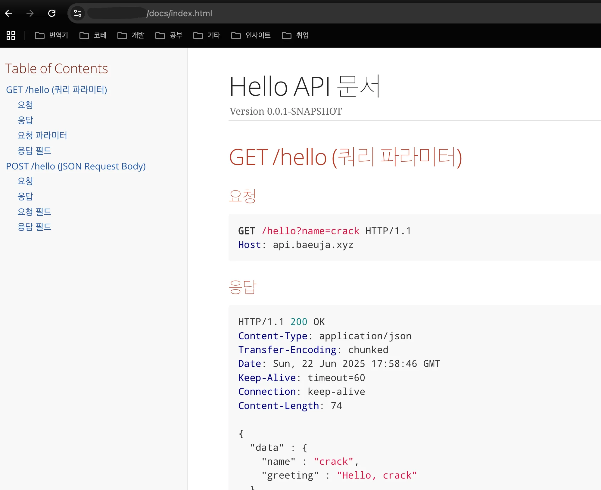 최종 생성된 문서는 {도메인}/docs/index.html 경로에서 확인할 수 있다.